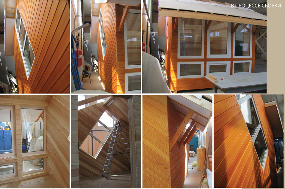 Малогабаритный жилой экомодуль Solar-5S в строительстве. По расчетам, доля пассивного солнечного отопления в экомодуле должна была составить 57% за холодный сезон. Ниже - его вариант в два этажа ....