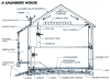 В предлагаемой схеме гелиоотопления южный фасад дома — ряд воздушных солнечных коллекторов, нагретый воздух из которых подаётся вентилятором в теплоаккумулятор, находящийся
