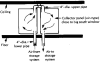 В данной схеме солнечного отопления используется комбинация пассивной системы с прямым поступлением тепла солнца и гелиоколлектор, установленный внутри помещения вблизи остекления.