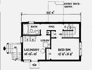 На нижнем уровне дома расположены: спальня, ванная комната, постирочная/техническое помещение. Под террасой главного уровня устроено патио.