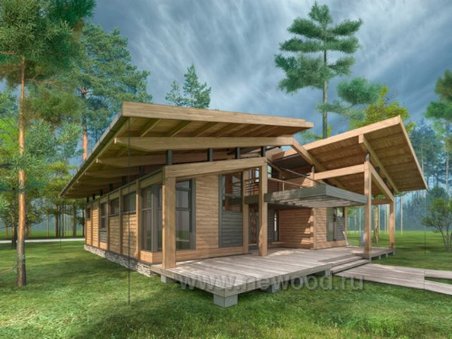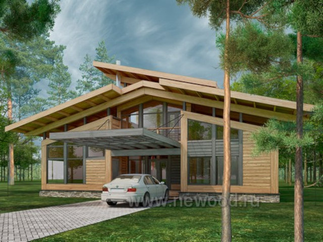 Жилой индивидуальный дом предоставляет собой двухэтажное здание со скатной крышей и наружными стенами из деревянного клеёного бруса.