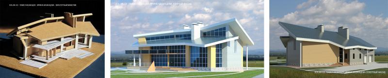Вид дома с юго-востока, архитектура Павел Казанцев, Анна Ляшко, технология - Ecococon.lt Диплом 1 степени за дом с солнечным отоплением Solar-Fs 19.02.2015, проект https://pavel-vladiv.livejournal.com/43807.html